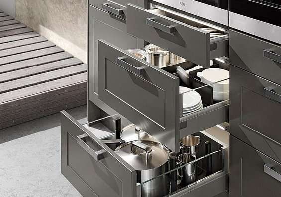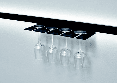 Sign Emotion offers helpful system extensions for the kitchen, like a magnetic knife rack, special holders for tablet computers, coffee capsules, kitchen towels, and various versatile shelves. It can also provide an additional power outlet.